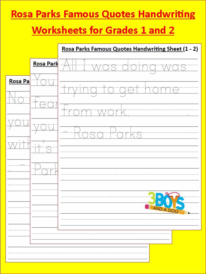 You’ll find 3 free handwriting pages, focusing on quotes from Rosa Parks.