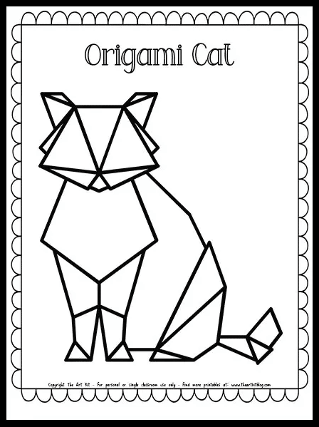 Click this link to download and print your free cat origami coloring page.