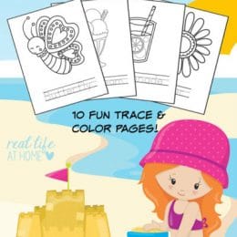 Here are FREE Summer Trace and Color Pages. These encourage fine motor practice and letter learning. Need more freebies? Click here for a huge selection of Free Homeschool Printables!