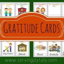 Serving Joyfully has FREE printable Gratitude Cards. This free download contains 18 cards. Many cards contain images of things children might be thankful for. I have also included 4 blank cards that you can use to create your own if desired. Need more freebies? Click here for a huge selection of Free Homeschool Printables!
