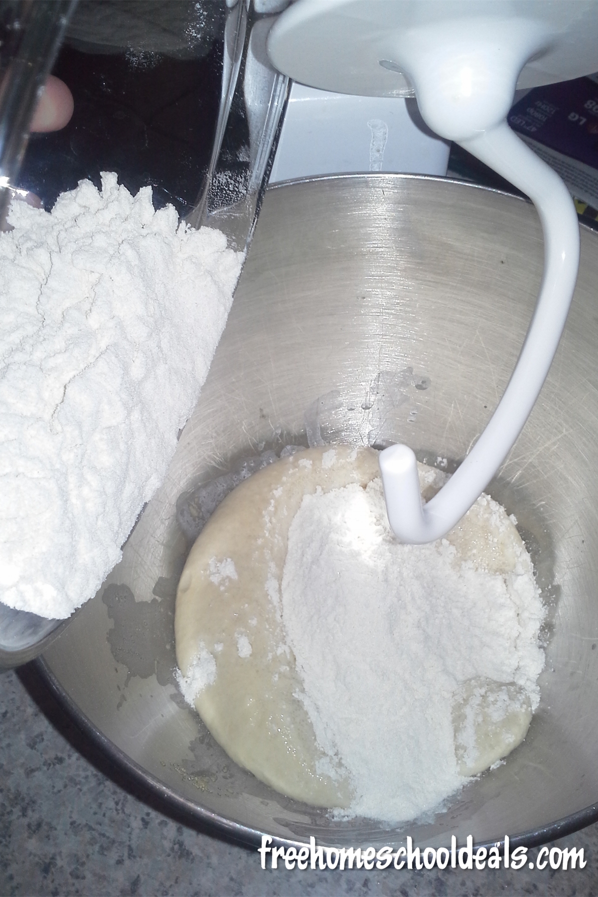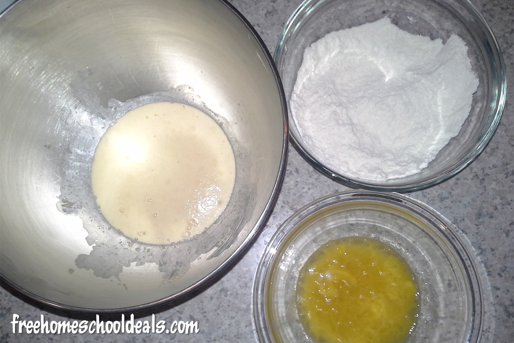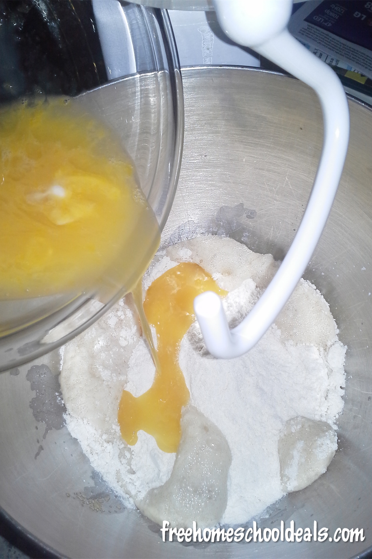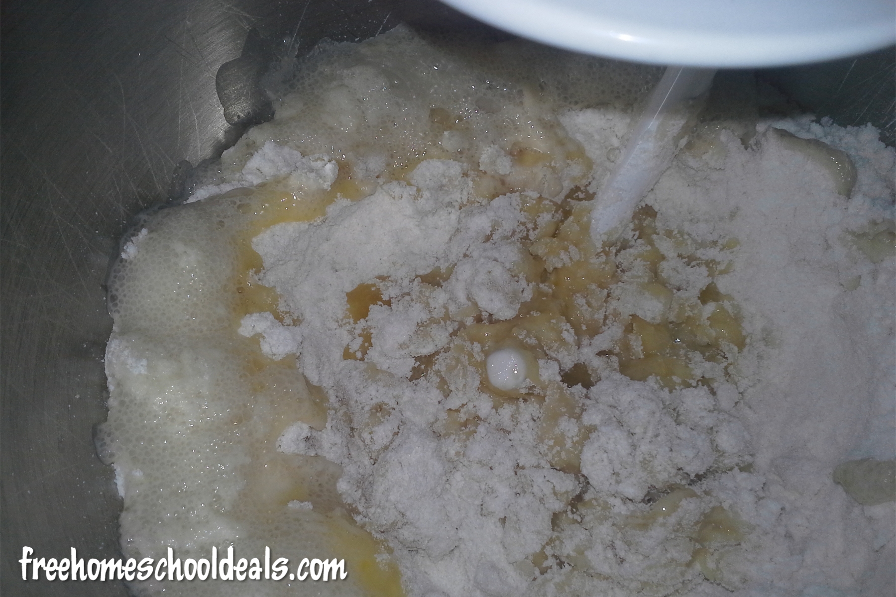 Then add to the dry ingredients together with the yeast mixture.