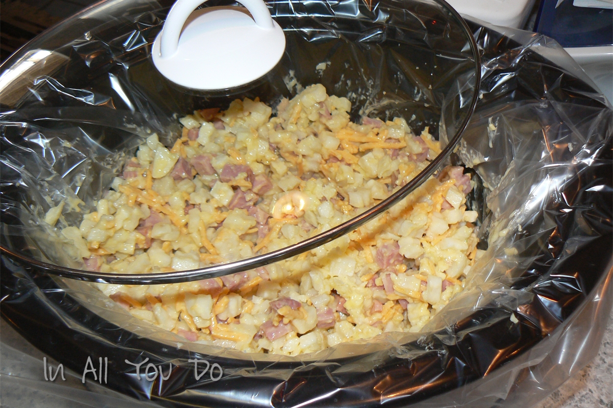 Pour into slow cooker. *I love using the liners for easy clean-up!