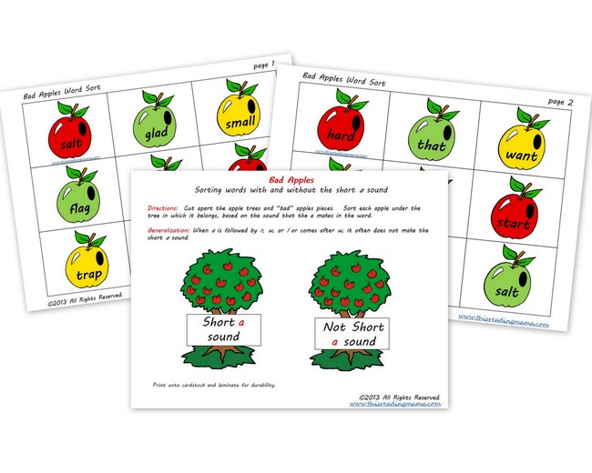 This Reading Mama has created Free Apple-Themed Word Sort Printables. This free printable set is for for Short a and other a Sounds.