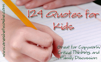 Head over to Or So She Says to download the free copywork eBook: 124 Quotes for Kids. When you get to the site, click on the image to download the free eBook.