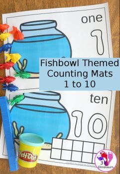 To practice counting 1-10 for your preschoolers or Kindergarteners, check out these Fishbowl Counting Mats + Ten Frames!