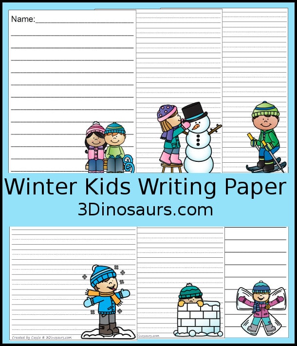 Writing this winter will be extra fun with this Free Kids Winter Activities Writing Paper from 3 Dinosaurs. You’ll find six different activities: skiing, building a snowman, sledding, making a snow angel, snow fort, and catching snowflakes. There are two types of paper: single line and guidelines which allows for multiple ages to use the same paper.