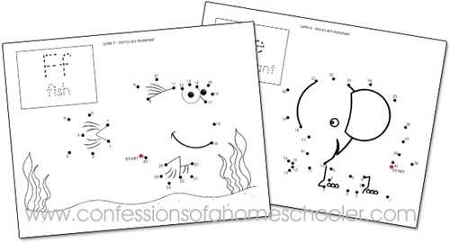 These FREE dot-to-dot worksheets help teach students number recognition, counting, and number order. While at the same time correlating with a letter from the alphabet so you’re working on several skills at once.