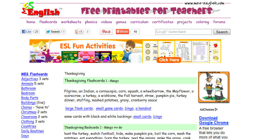 Visit mes-english.com for these Free Thanksgiving Flashcards, Worksheets, Word Searches, Mazes & More!