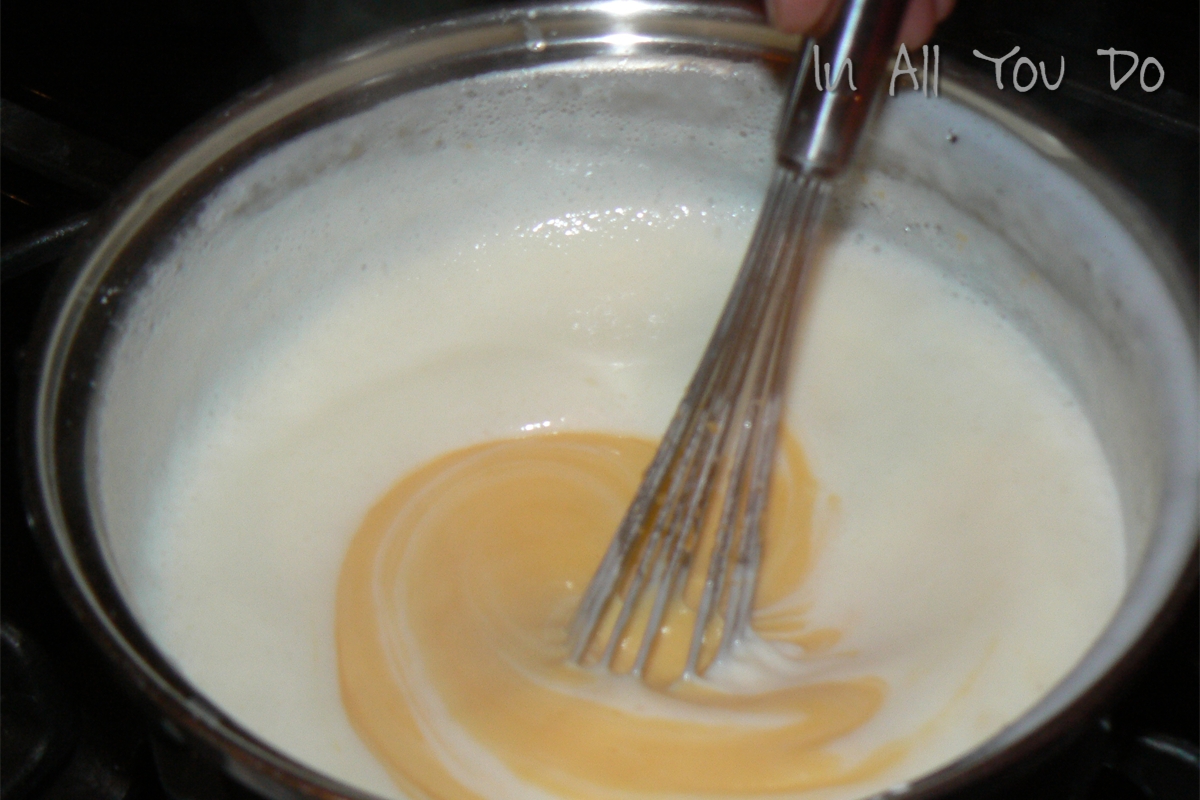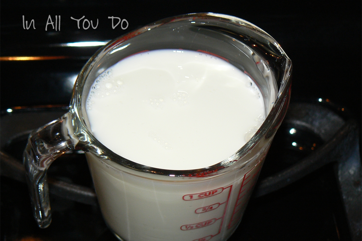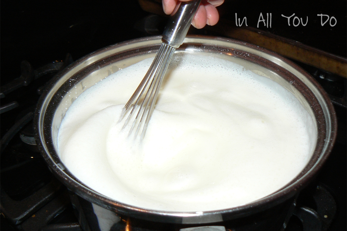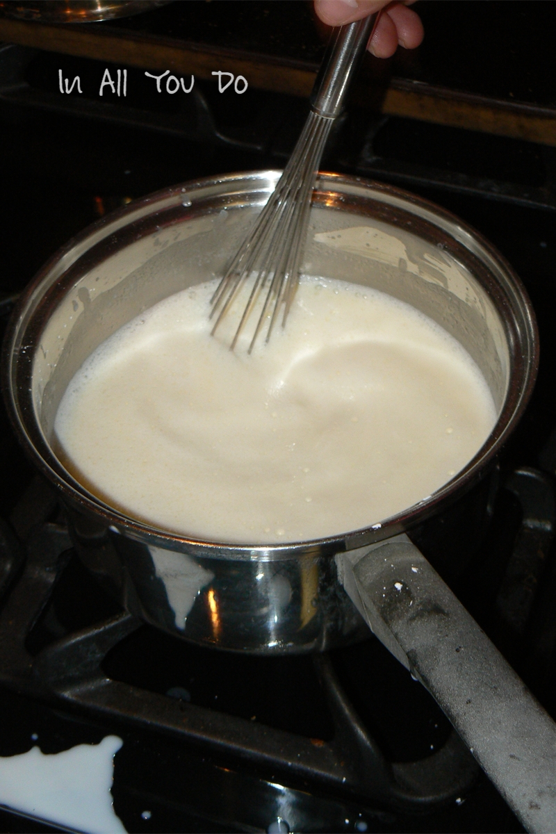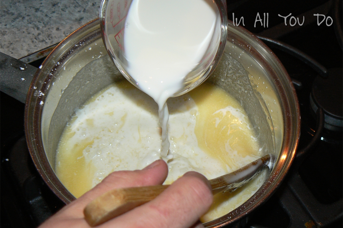 5. Add the milk. We prefer whole milk, but you can use whatever you like. But, I don’t recommend anything less than 2% because it might not thicken as well.