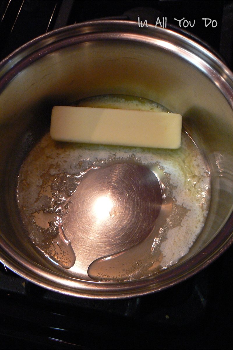 3. Now, in a medium size pan (or larger) you’re basically going to make a Rue. So, first melt butter over low heat.