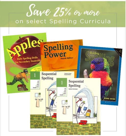 You’ll find popular resources like: Sequential Spelling, Spelling Power, Painless Spelling, Spellwell, and lots more!