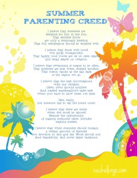 Who doesn’t need a regular reminder that summer is for enjoying our children? This summer creed printable will do just that for you. Just print it off and hang it where you will read and see it each day to remind you what is most important.