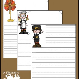 Here is a FREE Thanksgiving themed writing paper pack. In this pack you will find: Four different images turkey, girl pilgrim, and boy pilgrim. Pages with box for drawing with lines or guide lines Pages with just image and lines or guide lines Here are a TON of additional Thanksgiving Freebies!